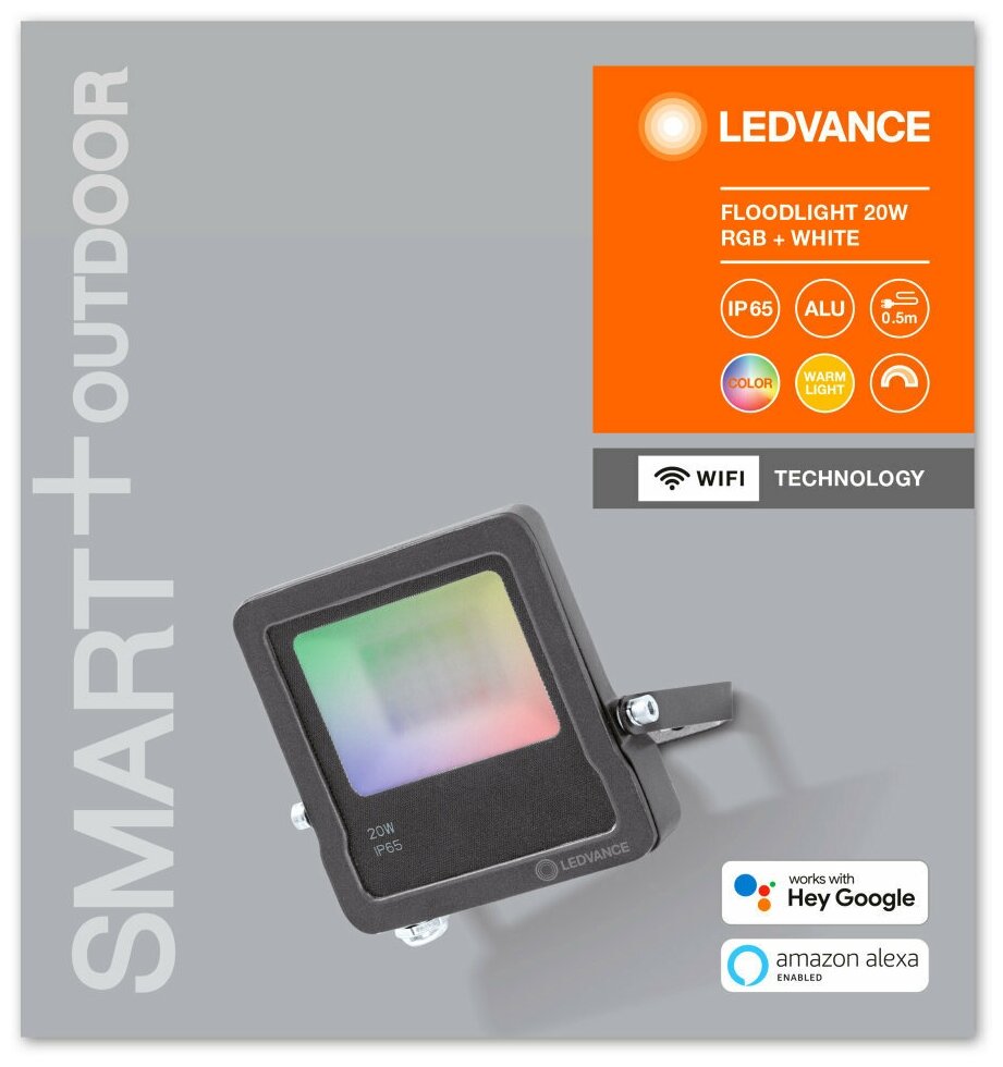 Отзывы на SMART WI-FI FLOOD 20W RGBW 1260lm IP65 DG LEDVANCE - LED прожектор с управ-ем
