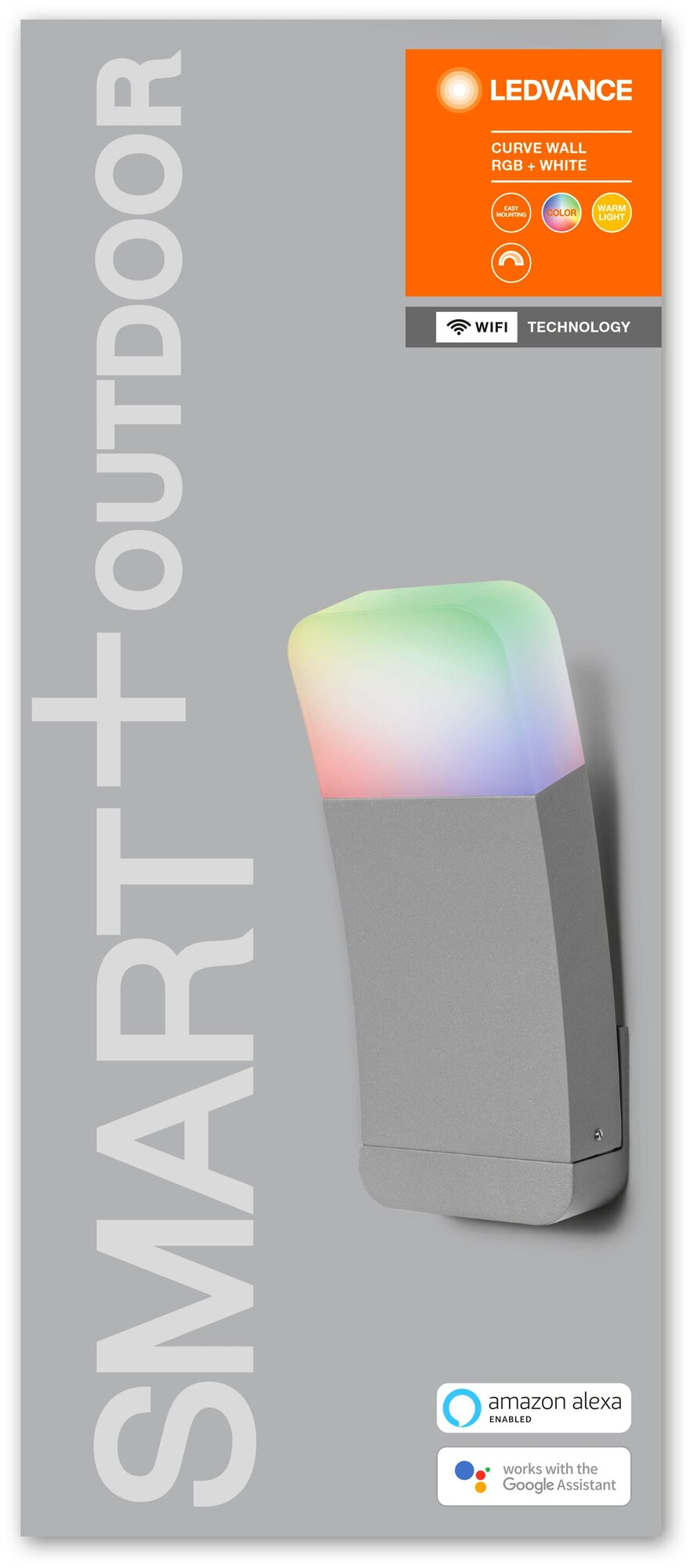 SMART OUTDOOR WI-FI CURVE WALL RGBW 3000K SILV (фасадн. БРА, 9W, 93x100x248, 520 lm)-LEDVANCE информация: