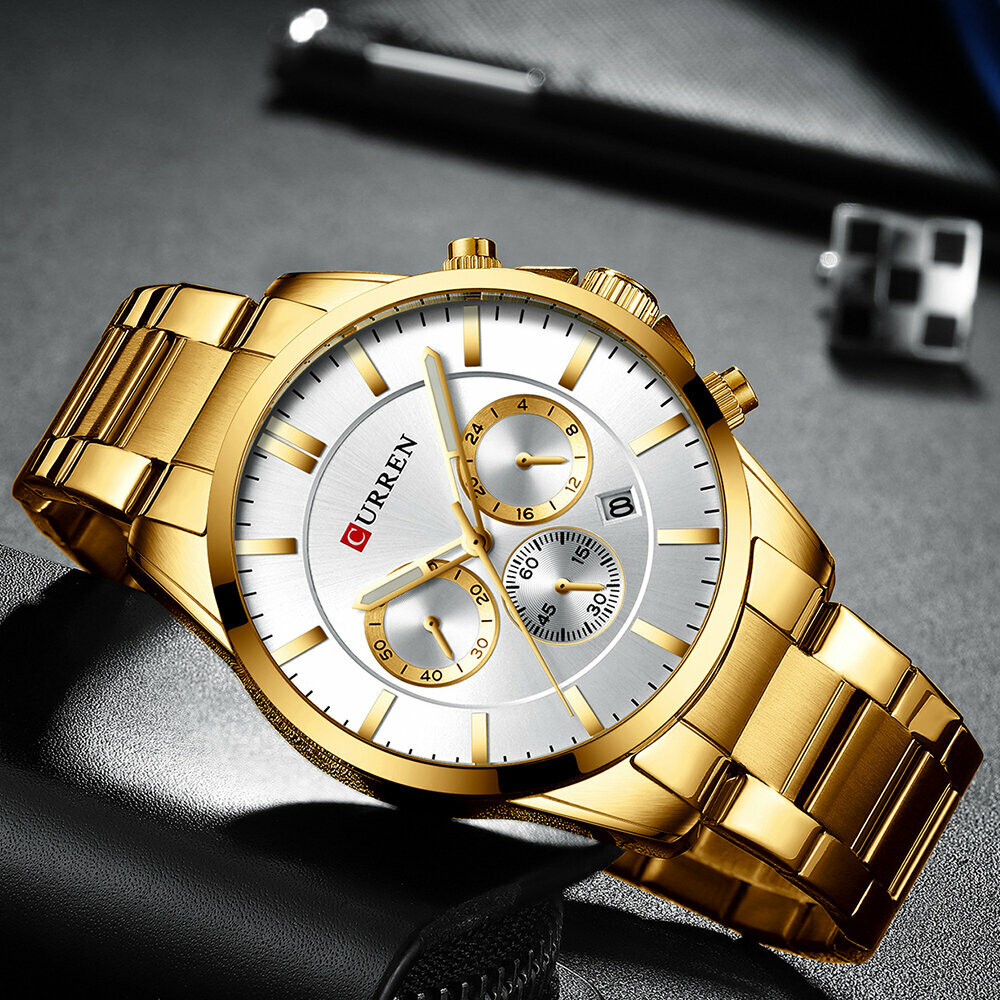 Часы наручные на металлическом браслете из нержавеющей стали, многофункциональные, хронограф, CURREN