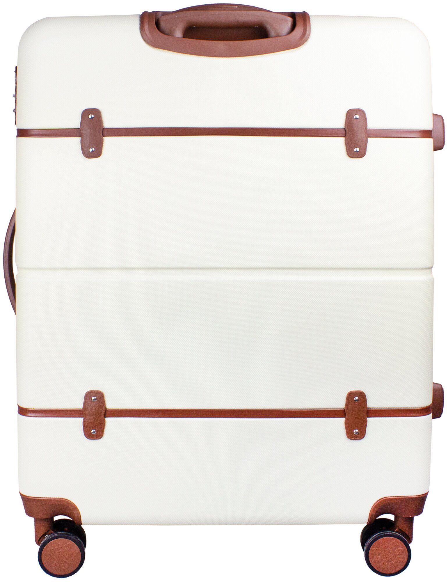 Чемодан на колесах ручная кладь Tour Vintage малый S, с кожаными ремешками PROFFI TRAVEL PH10219, бежевый, белый