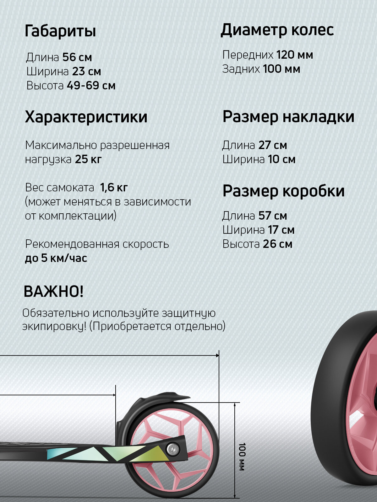 | Диаметр переднего колеса | 120 мм |