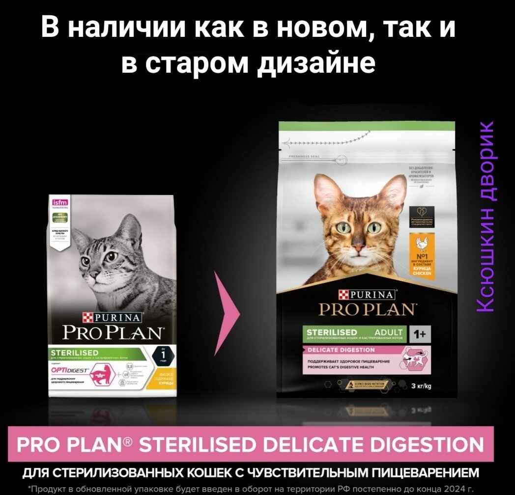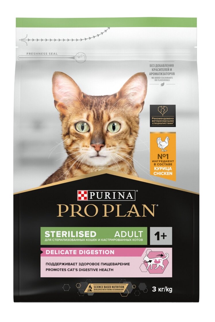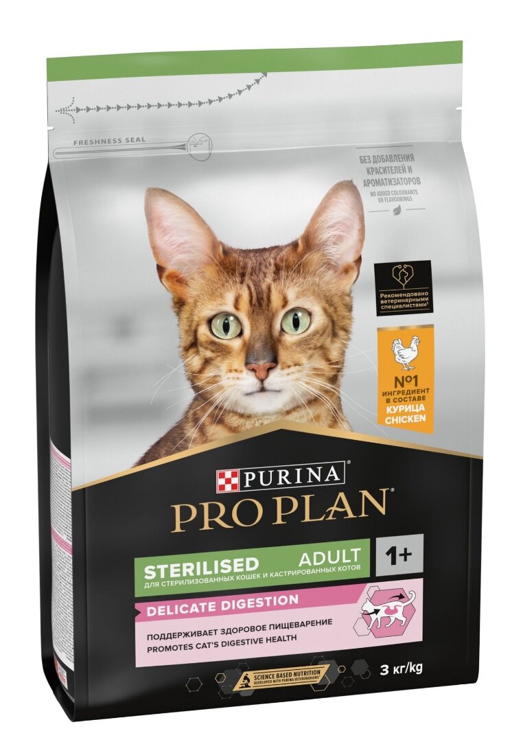 Сухой корм для кошек Pro Plan Sterilised для поддержания здоровья почек после стериализации, с курицей, 3 кг информация: