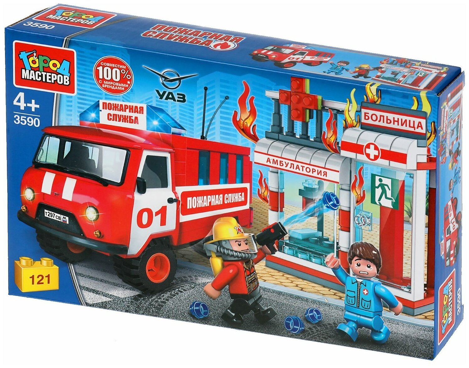 10 цен на Город мастеров. Конструктор арт.3590-R "UAZ 452: Пожар в больнице" 121 дет.