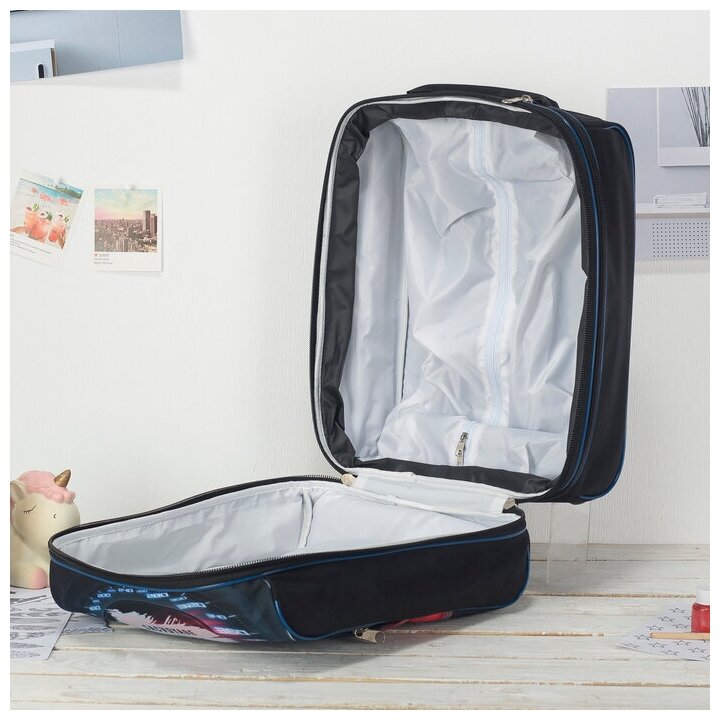 Чемодан малый 16", отдел на молнии, наружный карман, с расширением, цвет чёрный, «Тачка» информация:
