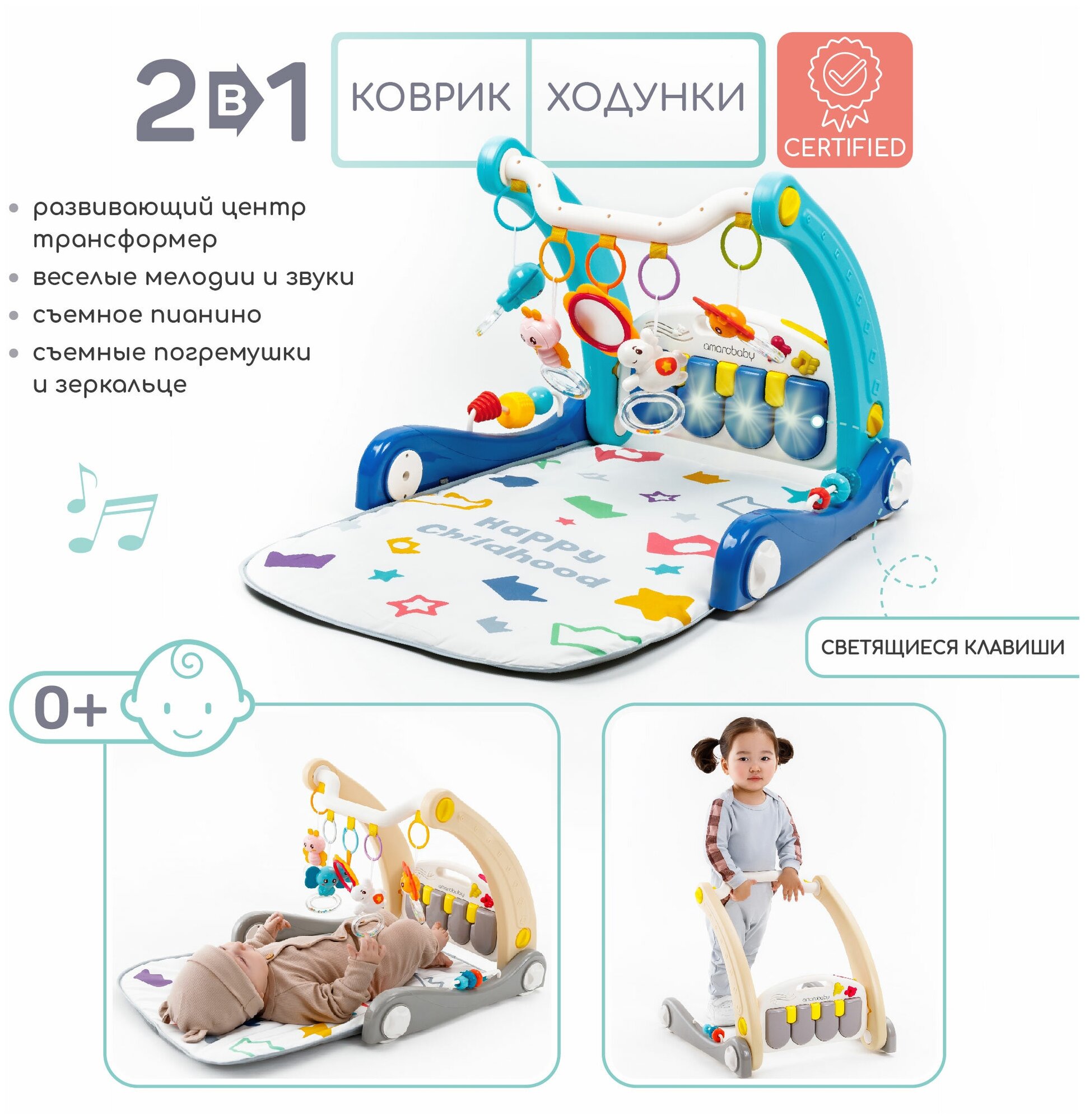 Отзывы на Каталка-ходунки Amarobaby Play Way 2 в 1 с развивающим ковриком и встроенной игровой панелью синий (AMARO-24PW-BL)