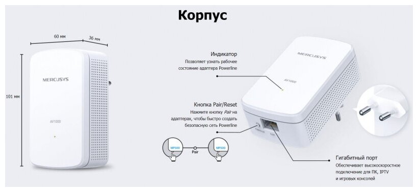 Wi-Fi адаптер Powerline Mercusys MP500 KIT информация: