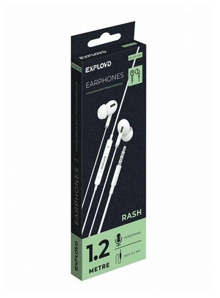 Наушники Exployd EX-HP-1161, вакуумные, микрофон, 3.5 мм, 1.2 м, белые информация: