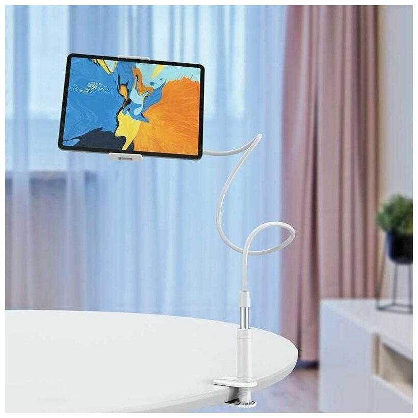 Держатель настольный HOCO, PH24, Balu, для планшета 4"-10,5", силикон, металл, для смартфона, гибкая нога 100 см, цвет: белый