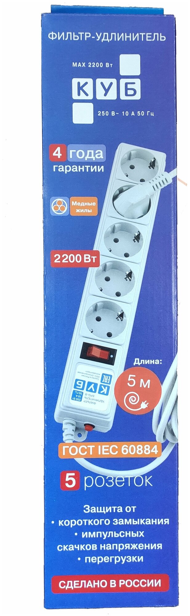 Отзывы на Фильтр-удлинитель Power Cube B 5,0 м 5 розеток (серый) 10А/2,2кВт