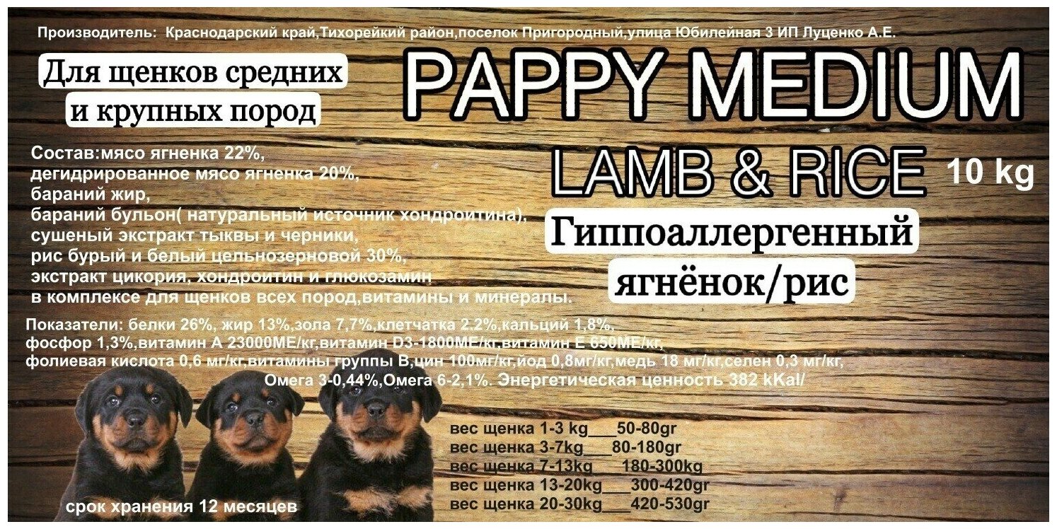 10 цен на DRIVE DOG PAPPY MEDIUM корм для щенков средних и крупных пород гипоаллергенный ягненок с рисом (5 кг)