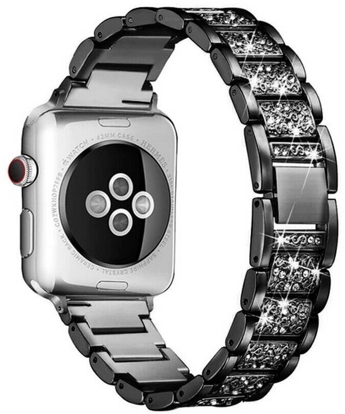 10 цен на Металлический ремешок со стразами для Apple Watch 42/44 mm, блочный (черный)