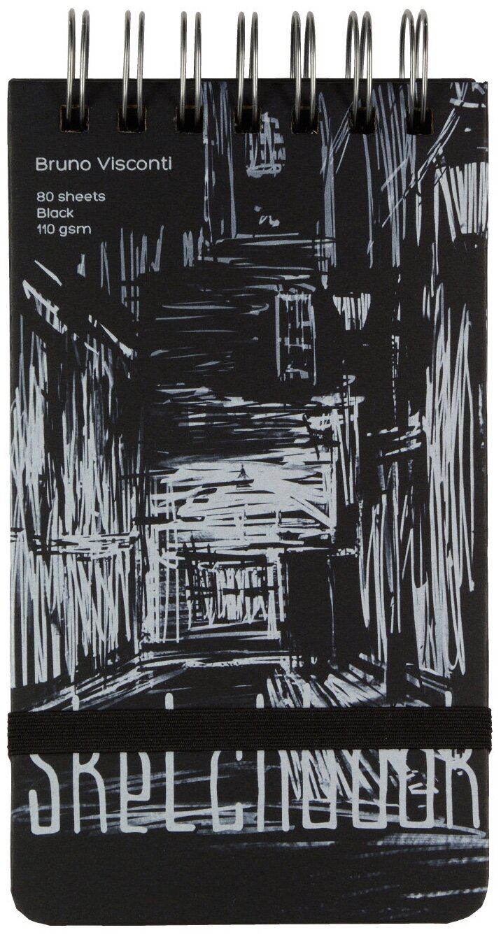 SKETCHBOOK BrunoVisconti, 105х185 мм, 80 л, Черный 110 г, на гребне, Арт. 1-502/03, обложка в ассортименте