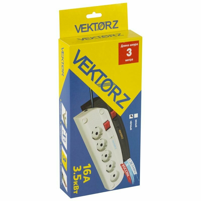 Сетевой фильтр VEKTOR Z, 5 розеток, с/з, 16А / 3500 Вт белый 3 м