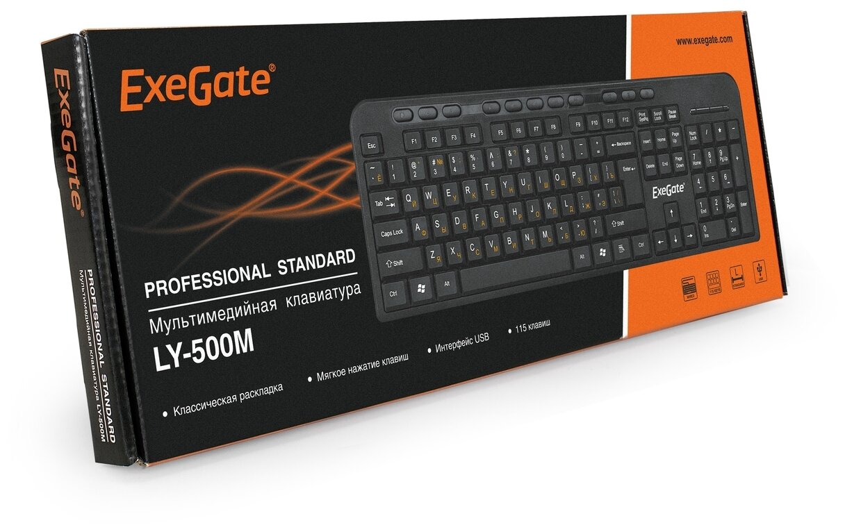Клавиатура ExeGate LY-500M (USB, 115кл., Enter большой, мультимедиа, шнур 1,5м, черная, Color box)
