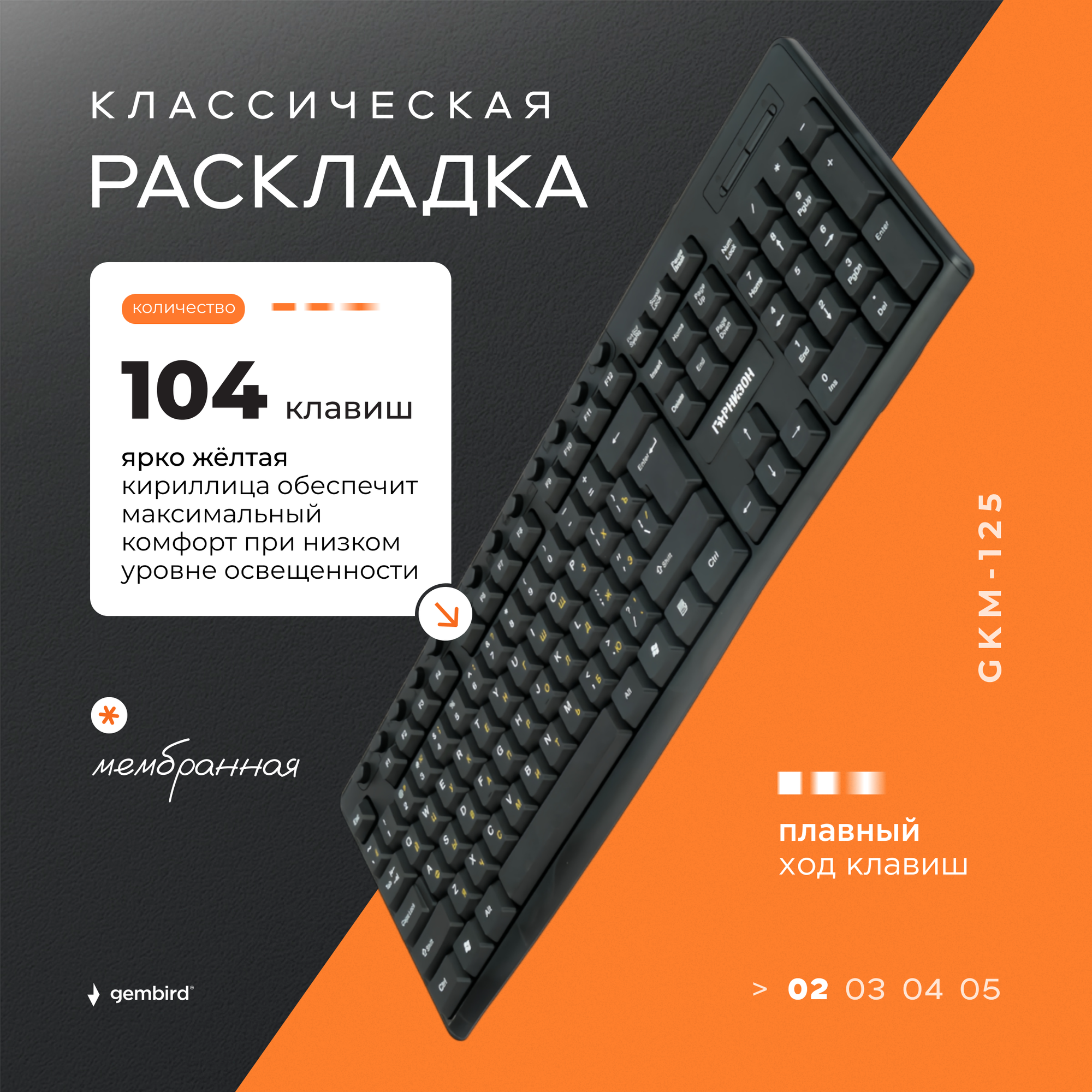 Проводная клавиатура Гарнизон GKM-125, USB информация: