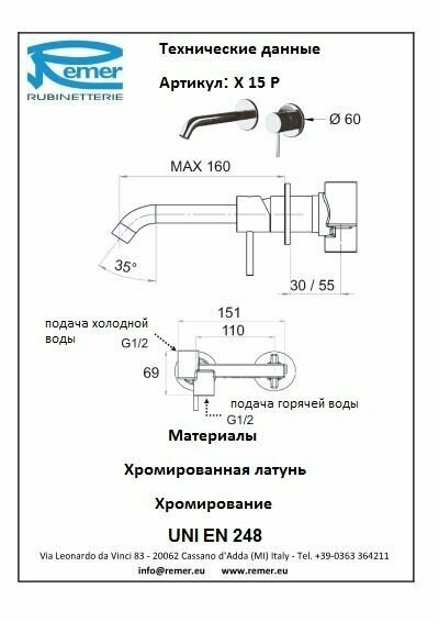Смеситель Remer X Style X15P для раковины, хром информация:
