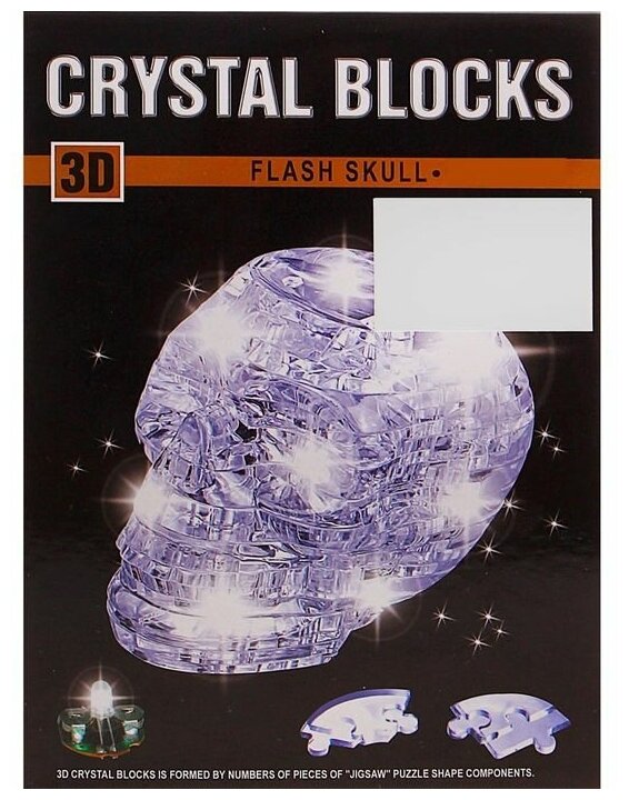 10 цен на 3D пазл кристаллический «Череп, 49 деталей, световые эффекты, работает от батареек (1 шт.)