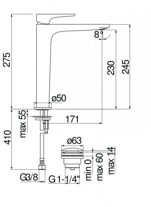 NOBILI YO126128/2CR YO смеситель для раковины высокий информация: