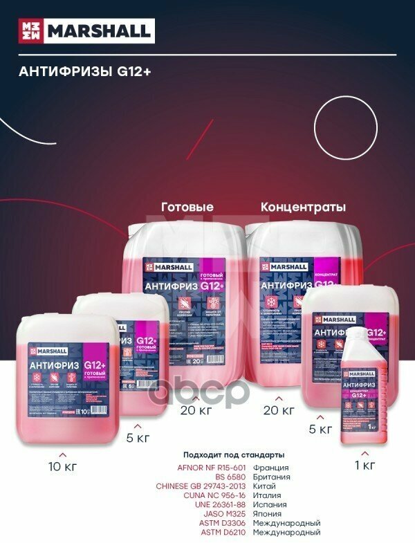 10 цен на Антифриз MARSHALL G12+, концентрат 1:1, красный, 20 кг