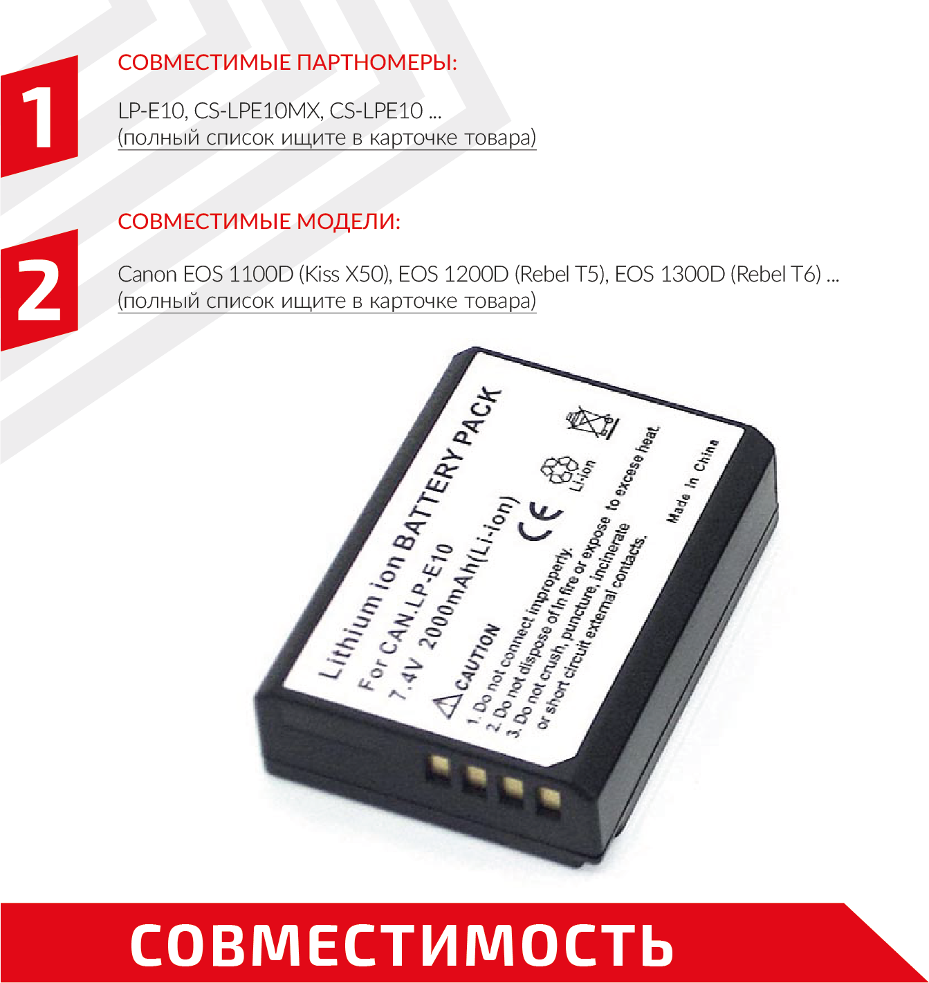| Совместимый аккумулятор | LP-E10 / CS-LPE10 |