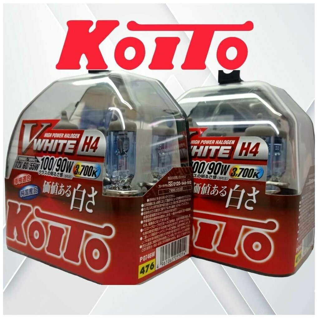 Лампа автомобильная Koito, H4, 12 В (60/55w) (100/90w), P43t White 3700K, набор 2 шт информация: