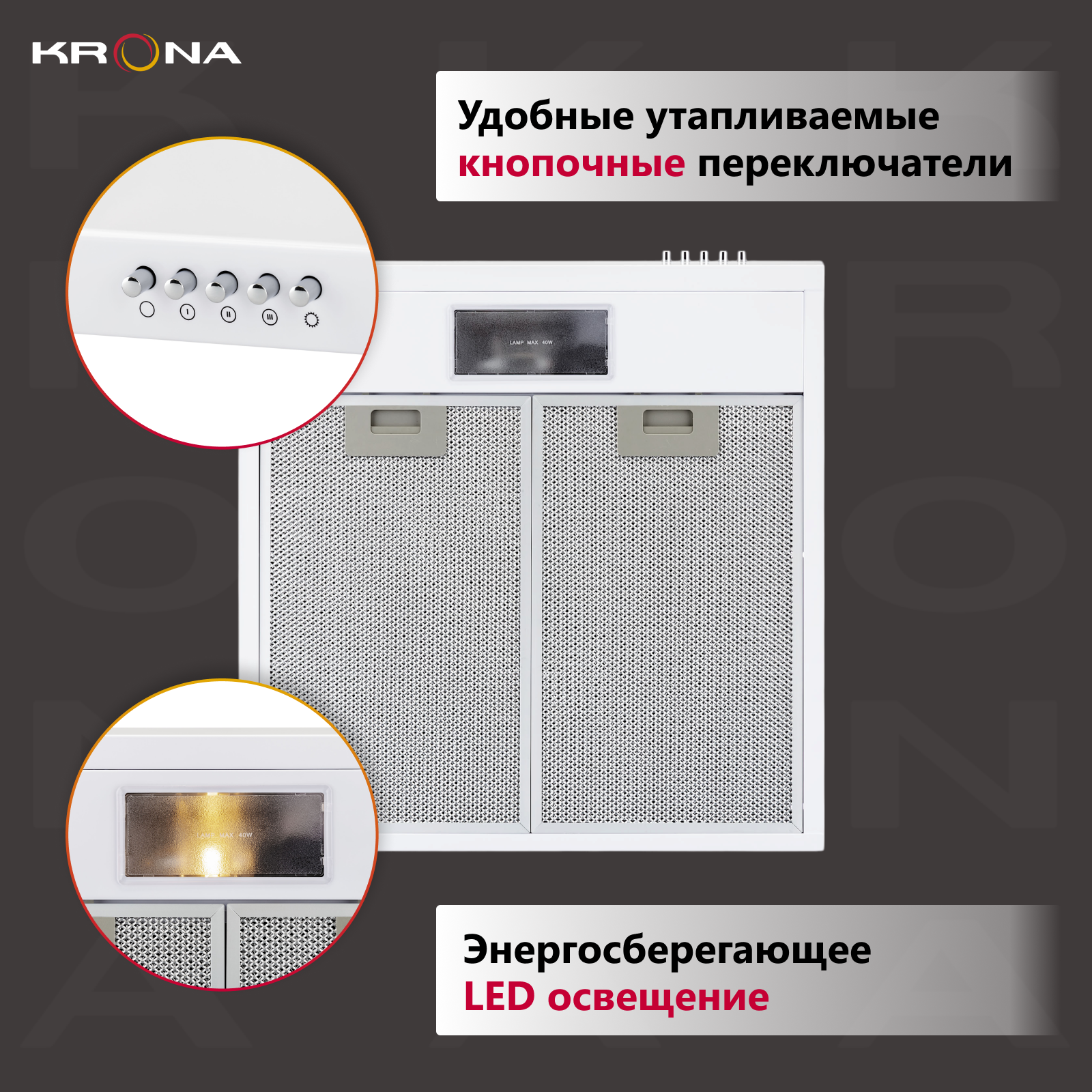 Вытяжка Krona Jessica slim 500 white push button информация: