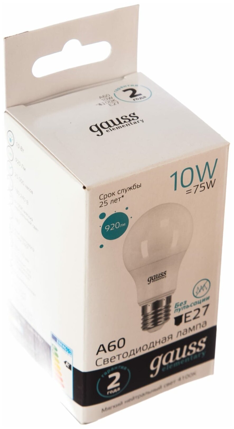 Лампа светодиод А60 10Вт 920Лм 4100К Е27 Gauss Elementary информация: