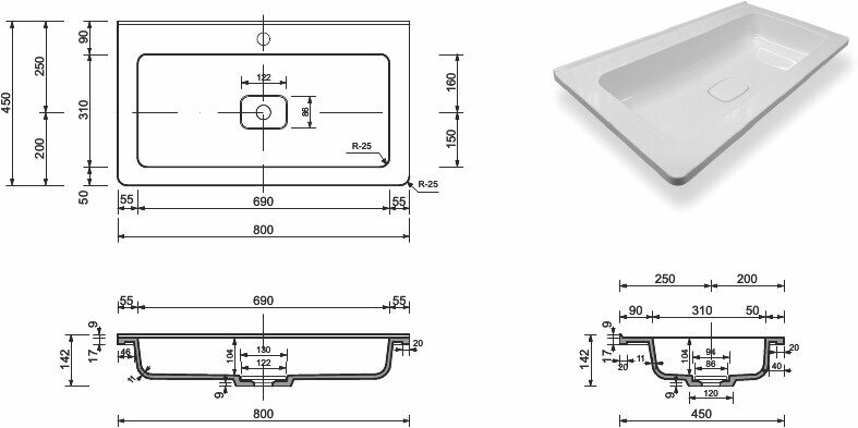 | Комплектация | два выдвижных ящика, ножки, раковина. |