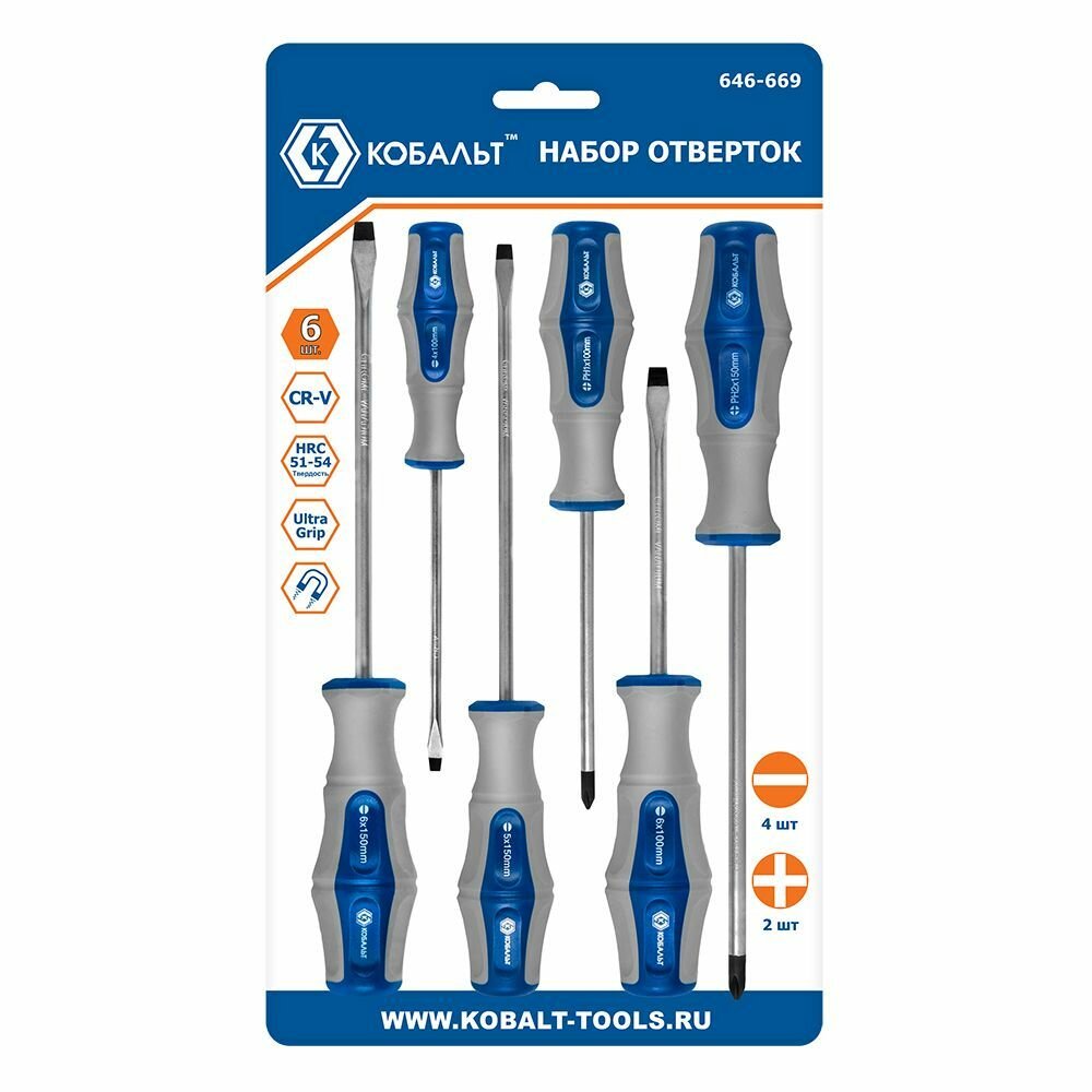 Кобальт Набор отверток Ultra Grip 646-669