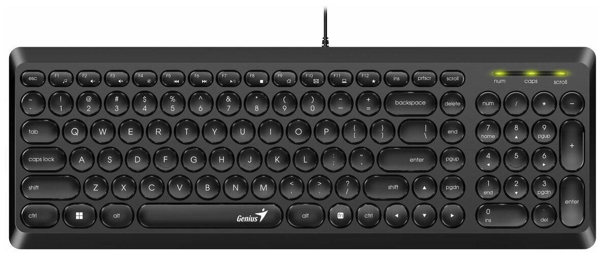 Клавиатура проводная мультимедийная Genius SlimStar Q200. 12 мультимидийных круглых клавиш, USB, под