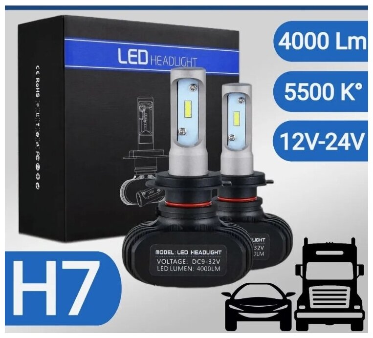 Лампы головного света S1 8000LM-6500K-50W/H7 информация: