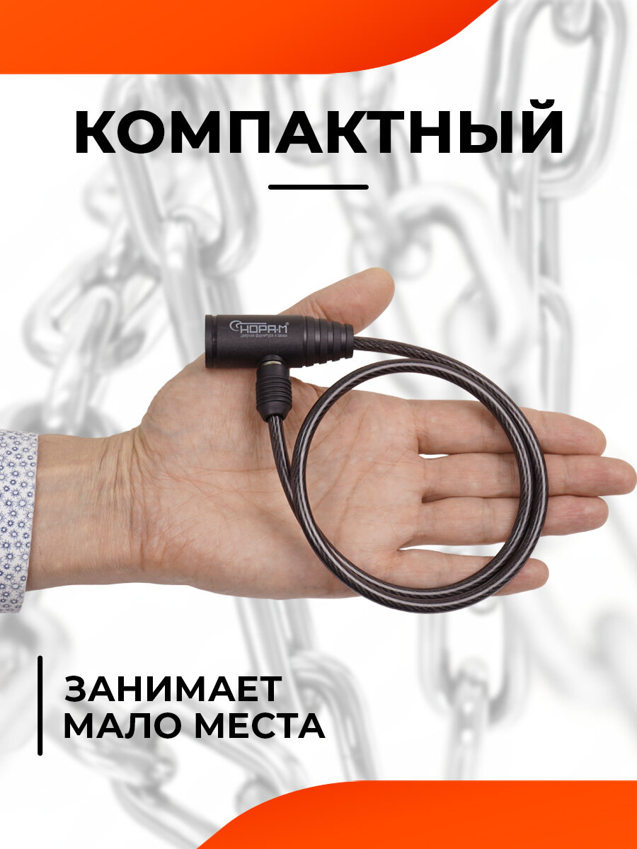 Замок велосипедный Нора-М №22 6х1000 (противоугонный, стальной трос 6мм, длина 100см) - Черный информация: