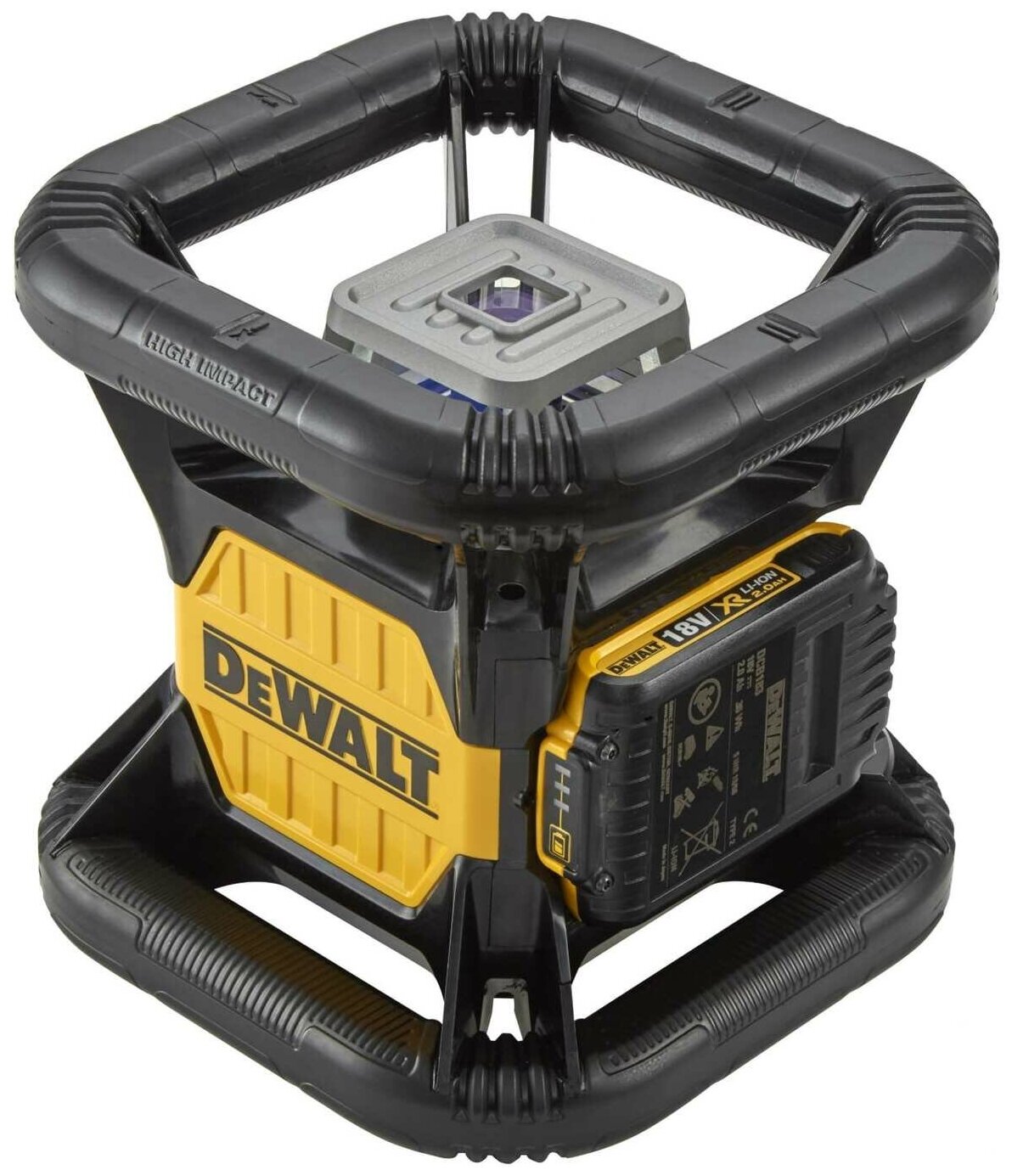 DeWALT Cамовыравнивающийся ротационный красный лазерный уровень для вертикального и горизонтального применения, 18.0 В Li*Ion батарея 2.0 Ач, мишень*лучеуловитель, очки, лазерный детектор DE0772, пульт ДУ, зарядное устройство, кофр DCE079D1R