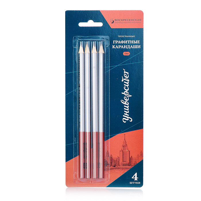 Графитные карандаши 4 шт. "ВКФ" "Университет" набор трехгранные заточенные ТМ (HB) информация: