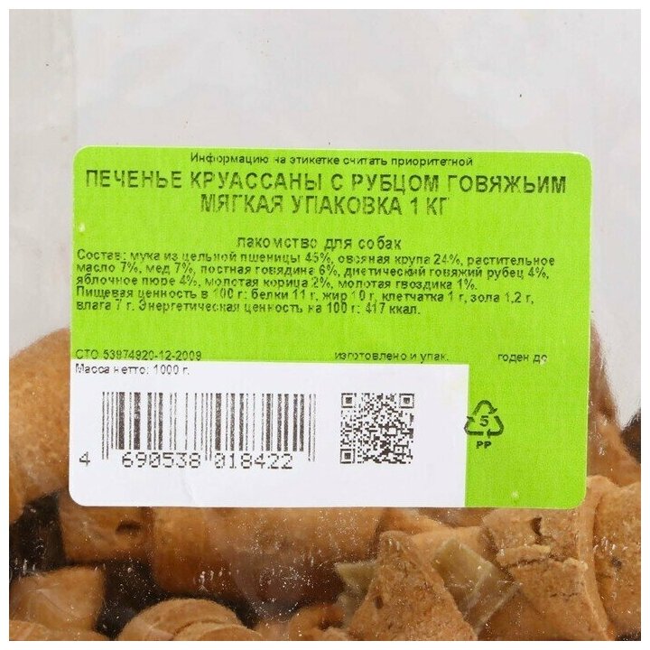 Лакомство TitBit "Печенье Круассаны" для собак с рубцом говяжьим 1 кг информация: