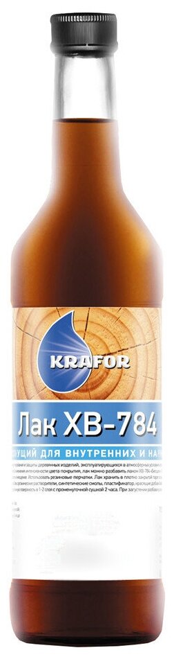 Лак ХВ-784 быстросохнущий Krafor, глянцевый, 0,5 л, сосна, 1шт, стеклянная бутылка