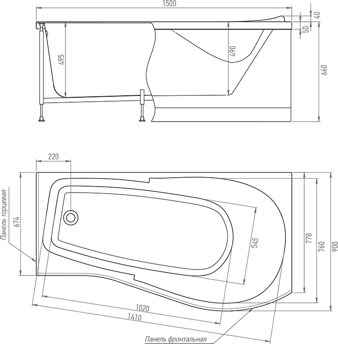Ванна Gamma 140х70 см, акриловая, на каркасе, экран к ванне Gamma 140