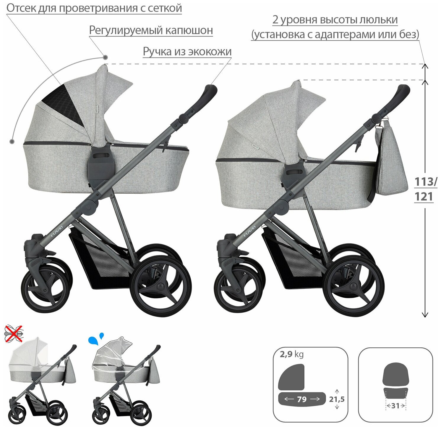 | Ручки для переноски (люлька) | жесткие |