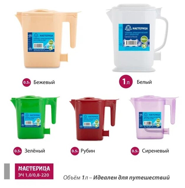 Отзывы на Чайник электрический Мастерица ЭЧ-10/08-220Б пластиковый белый 1 л 800 Вт