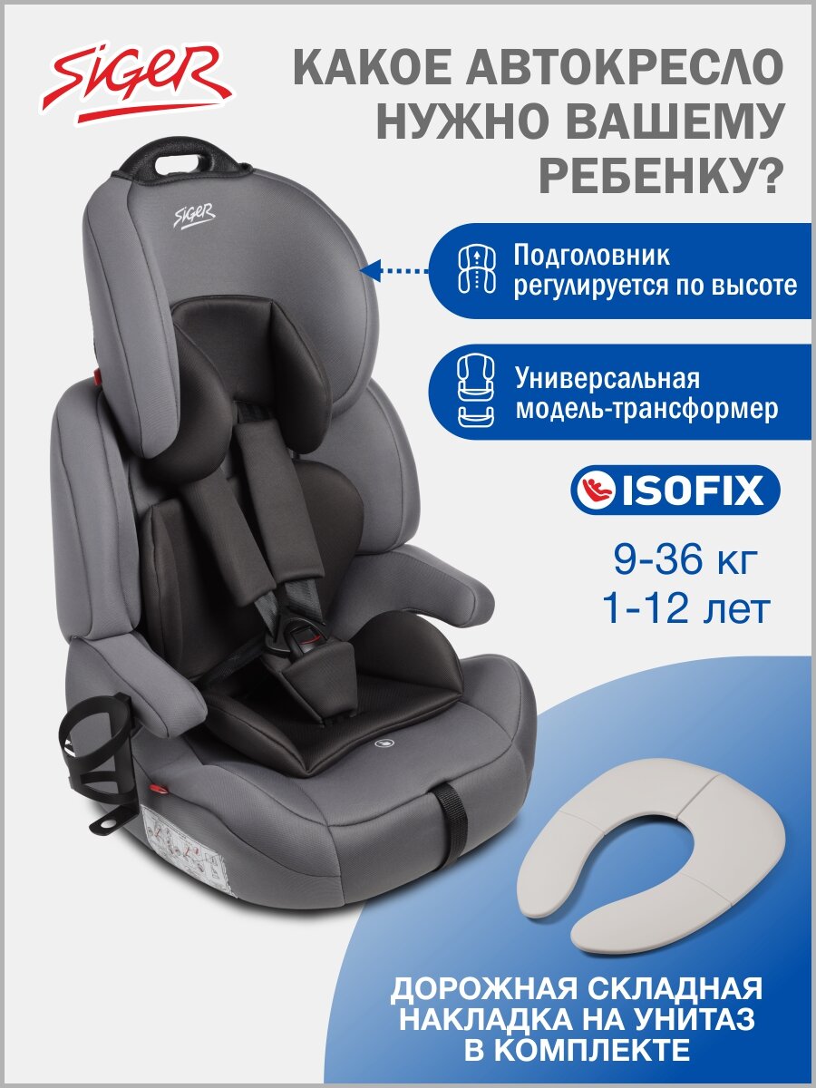 10 цен на Автокресло детское Siger Стар IsoFix от 9 до 36 кг, цвет маренго