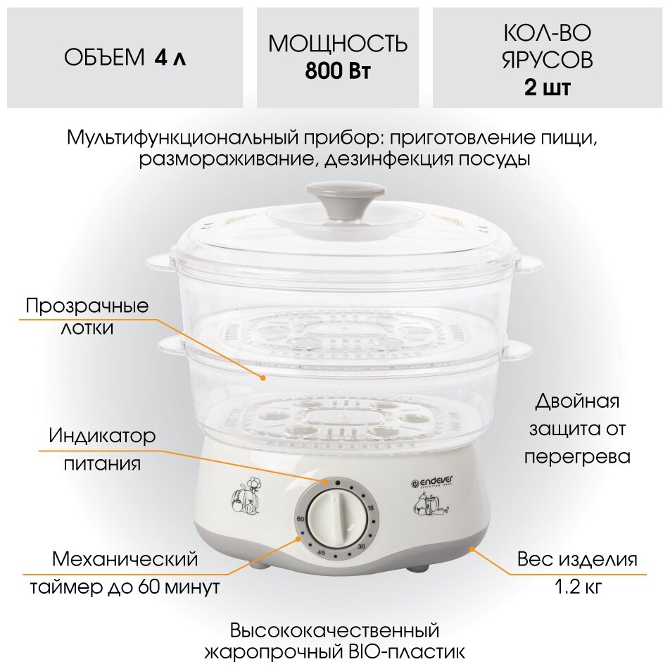 10 цен на 80243 Пароварка Endever Vita 160 белый