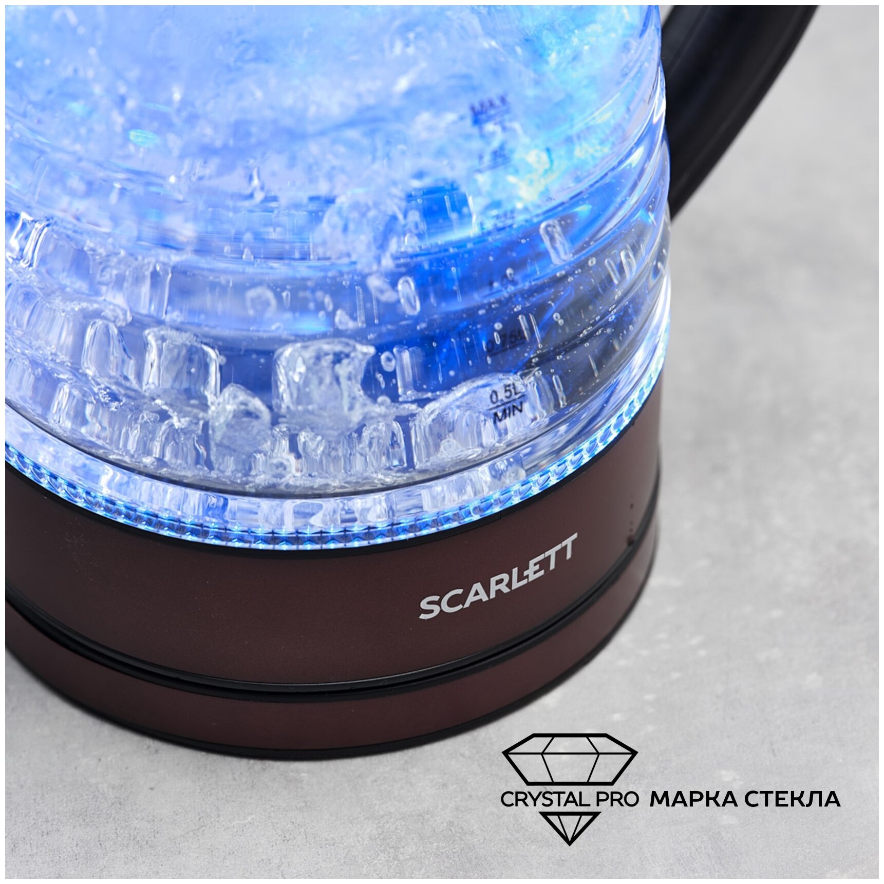 Чайник SCARLETT SC-EK27G97, 1,7 л, 2200 Вт, закрытый нагревательный элемент, стекло, коричневый