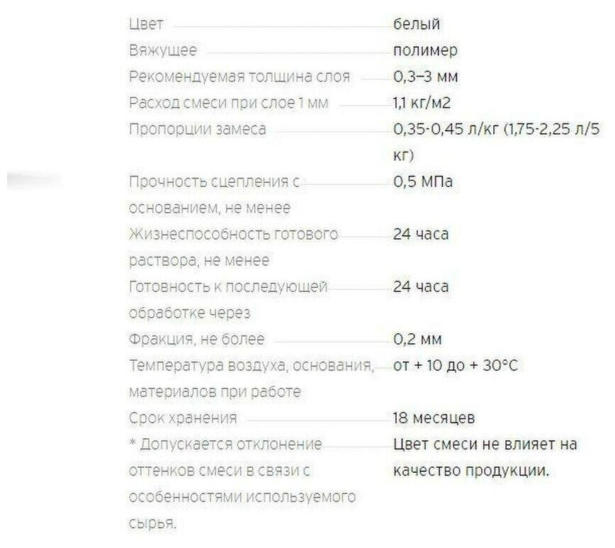 | Расход смеси (слой 1 мм) | 1 л/м² |