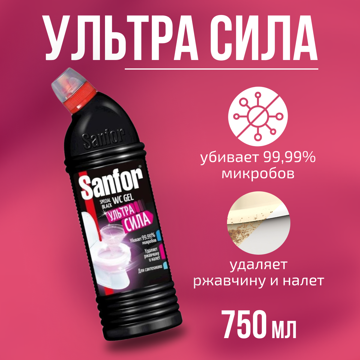 10 цен на Чистящий гель для унитаза Sanfor special black цветущая сакура 750 мл