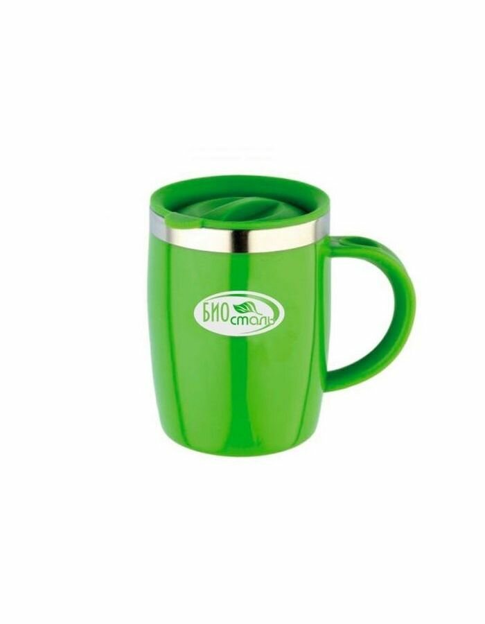 Кружка дутая Biostal Fler (0,4 литра) с крышкой, зеленая информация:
