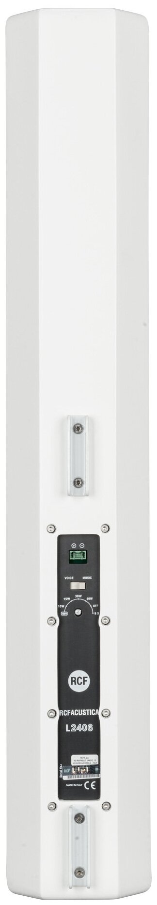 RCF L 2406T W (13000177) Трехполосная акустическая колонна с контролируемой направленностью, частотный диапазон 100 Гц -20 кГц, номинальная мощность: 200 Вт / 8 Ом или 100V/60W, давление 126 дБ макс, 6 X 5" Нч +4 X 1" ВЧ, направленность 150°х30°, часто 153 011 ₽