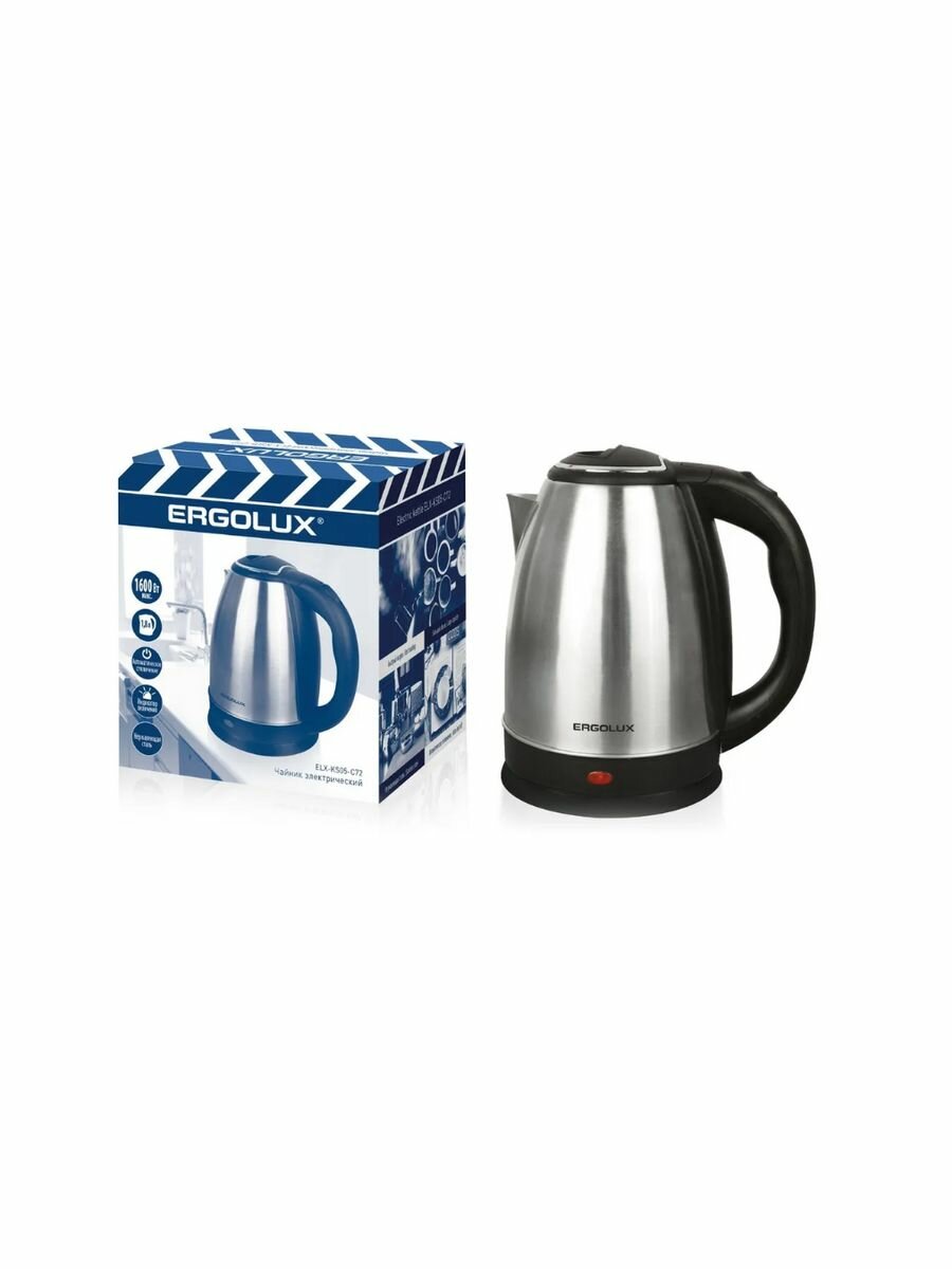 Чайник электр. ERGOLUX ELX-KS05-C02 промо нерж.сталь/пластик, диск 1.8л, индикатор, 220V 1600W черн