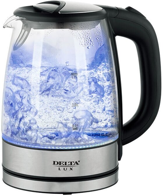Электрочайник DELTA LUX DL-1204В корпус из жаропр. стекла, чёрный: 2200 Вт, объем 1,7 литра