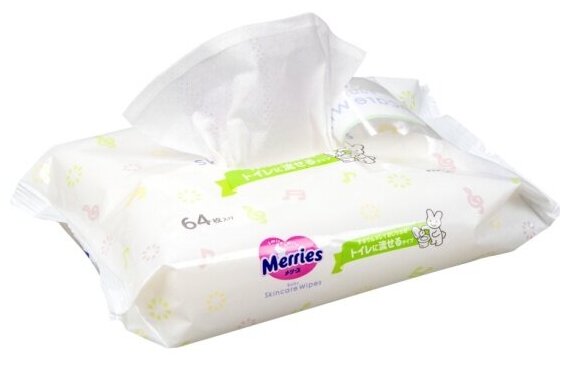 Влажные салфетки Merries Flushable сменный блок, 64 шт.