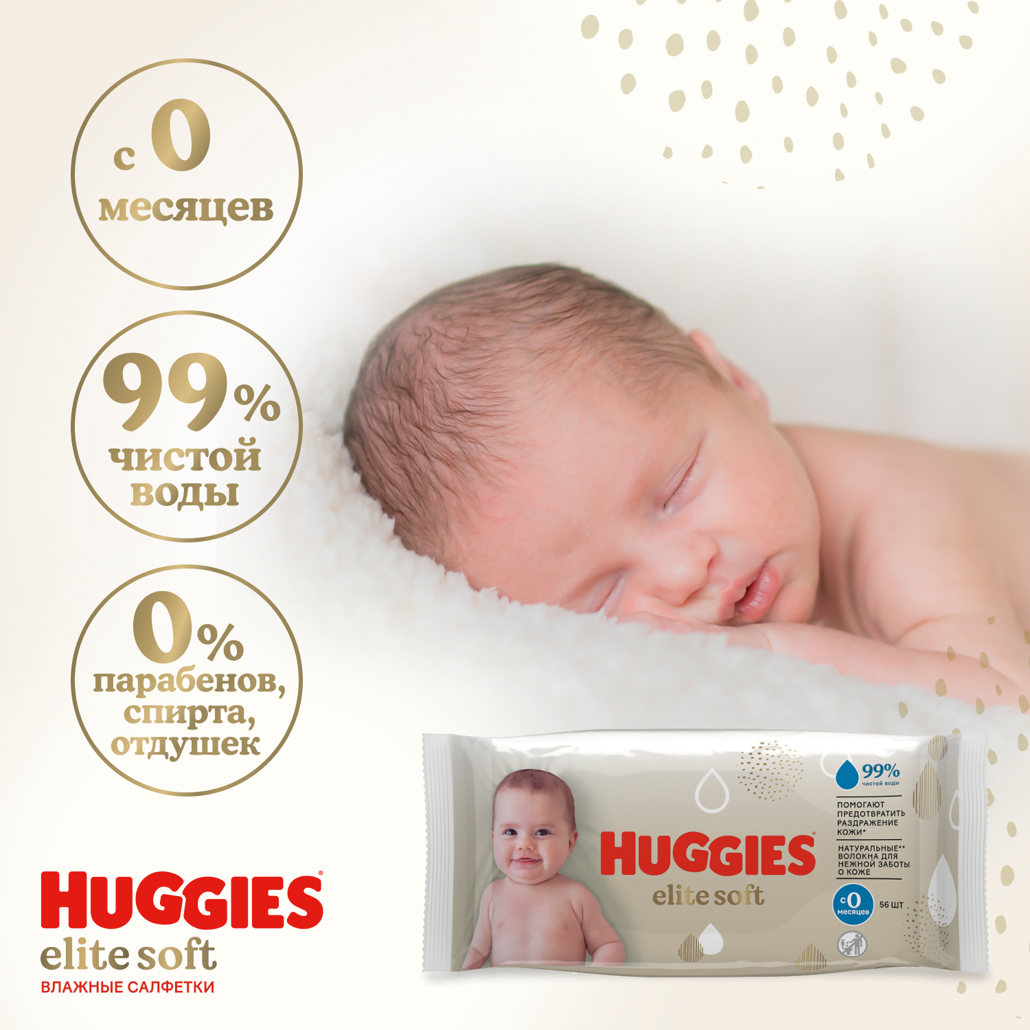 Влажные салфетки Huggies Elite Soft для новорожденных, 56шт
